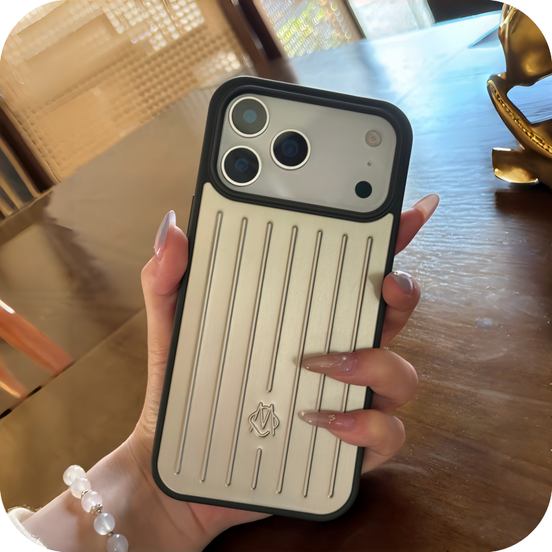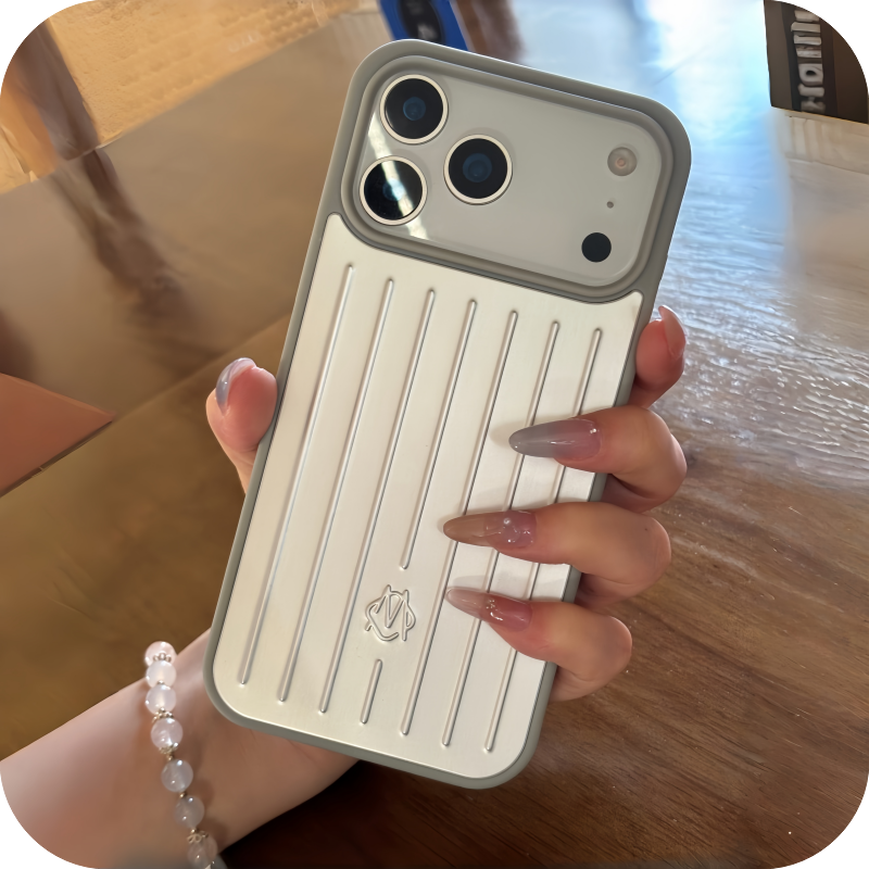 Ribbed metallic texture inspired by modern travel design — minimal yet instantly recognizable. Adds grip while keeping your phone stylishly unique.