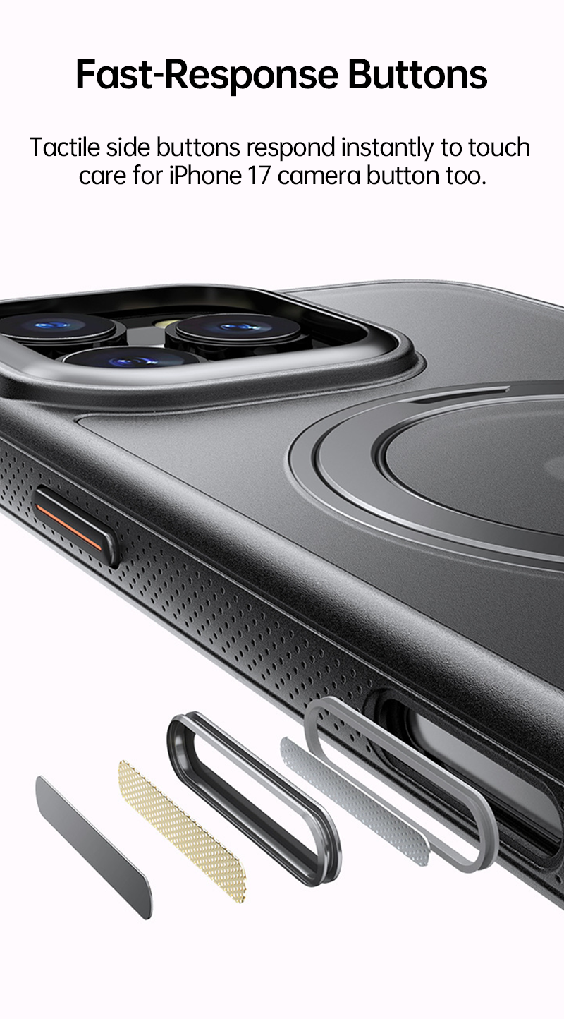 Tactile side buttons respond instantly to touch, improving usability without sacrificing protection.