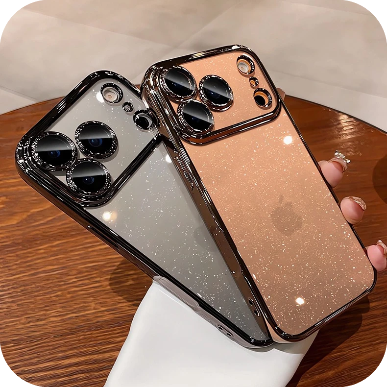 AIRKAS Luxury Glitter Hard Plating Clear Case for iPhone 17